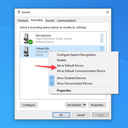 Either set the virtual mic as your default device or select it in other apps (Skype, Discord, Zoom…)
